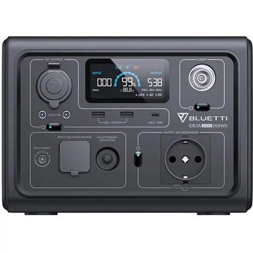 پاور استیشن بلوتی مدل EB3A با ظرفیت 268Wh و توان خروجی 600 وات، یک منبع برق قابل‌حمل و سریع‌شارژ است که از باتری LiFePO4 با طول عمر بالا بهره می‌برد. مناسب برای کمپینگ، سفر و شرایط اضطراری، با خروجی‌های متنوع، شارژ خورشیدی، برق شهری و پد بی‌سیم 15 وات.